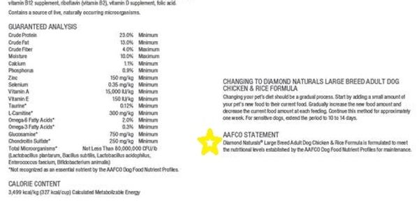 AAFCO STATEMENT: Meets nutritions standards of the AAFCO. If it does not have the AAFCO statement, you are wasting your money buying food that is simply malnourishing. All food labels on the back or front will state for themselves that Such and such brand, meets the AAFCO standards, all will. You are looking for the ones that say both or have the AAFCO's Statement. Even though we know the food companies are only half regulated, we have to set standards somewhere. You will be surprised at the high dollar food that does not meet standard.